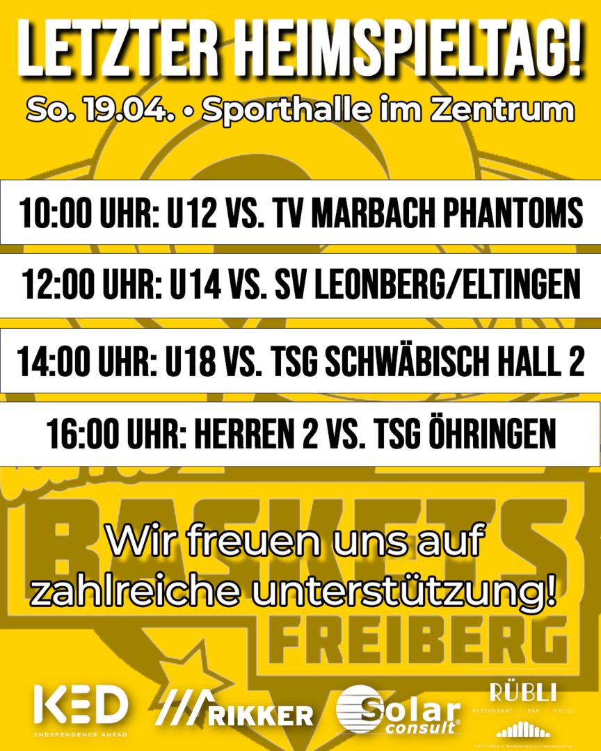 Zum letzten Heimspieltag der Saison laden wir euch am Sonntag dem 19.04.2026 herzlich in die Sporthalle im Zentrum ein! Kommt vorbei, unterstützt unsere Teams lautstark von der Tribüne und sorgt gemeinsam für eine großartige Atmosphäre.